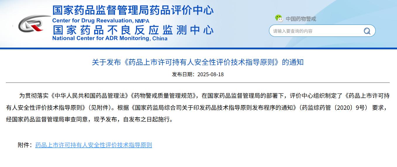 關(guān)于發(fā)布《藥品上市許可持有人安全性評(píng)價(jià)技術(shù)指導(dǎo)原則》的通知