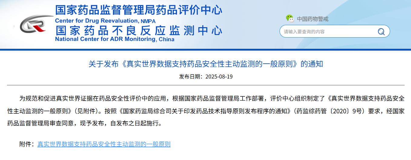 關(guān)于發(fā)布《真實(shí)世界數(shù)據(jù)支持藥品安全性主動(dòng)監(jiān)測(cè)的一般原則》的通知